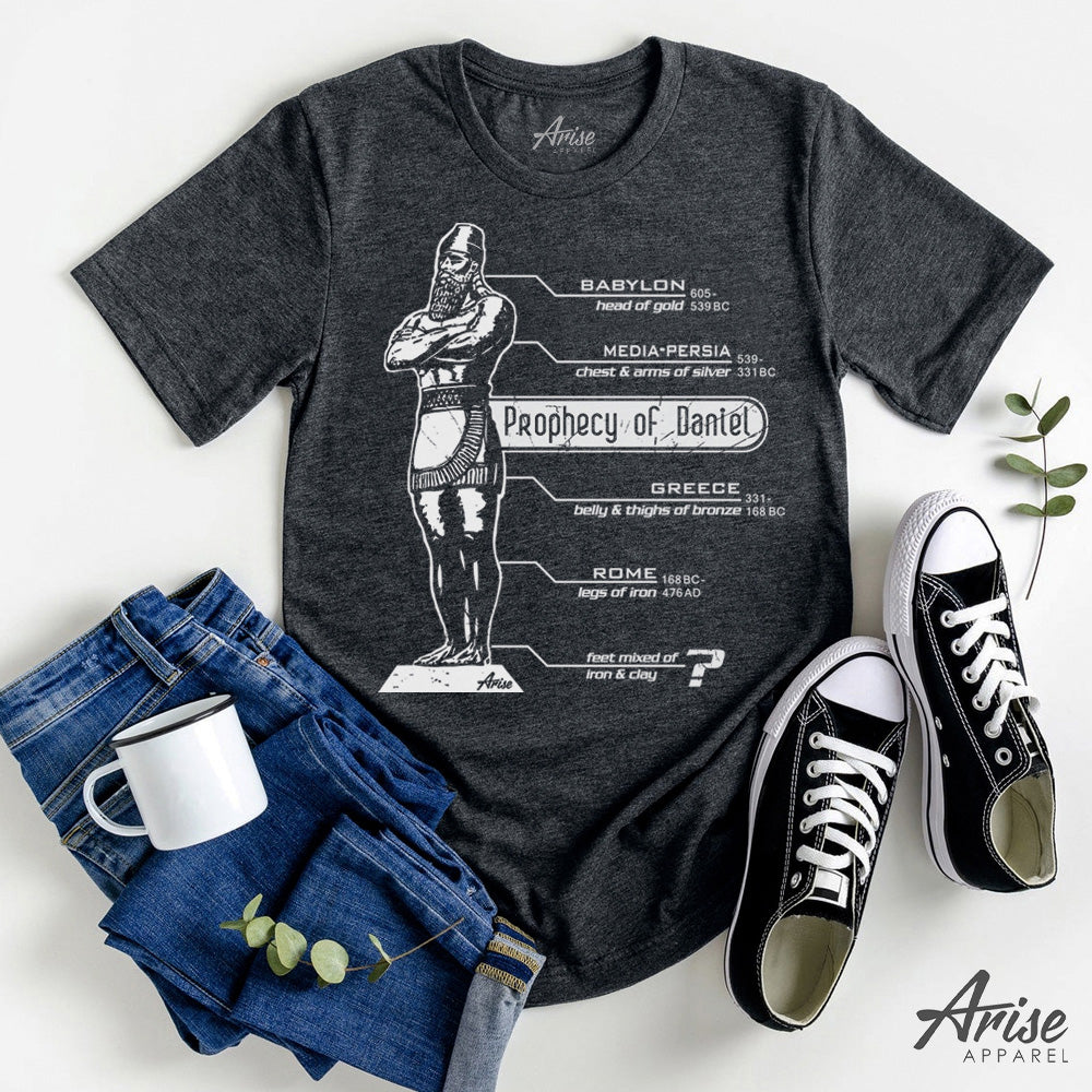 The dream of King Nebuchadnezzar found in the book of Daniel chapter 2. The Bible study was about one of the Bible’s most amazing prophecies. Study how God reveals 500 years of prophecy before it even happened! You will be such a cool theology scholar when you wear this t-shirt during the next Bible Study!