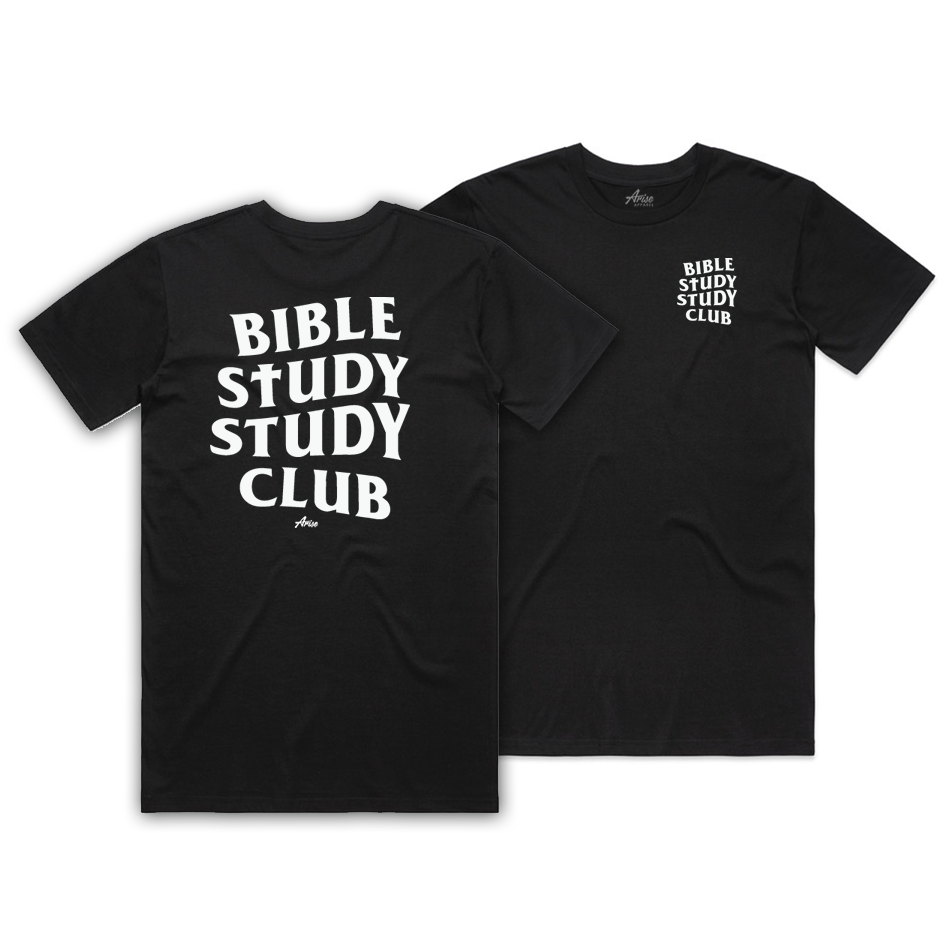A special drop taking on the streetwear concept feel, but with a Christian twist. Bible Study Study Club is a interesting and fun way to spark a conversation with someone. Who knows how many people might end up joining your Bible Study Club through this t-shirt! Go out there, witness, share, and study God's Word from the Bible Scripture.Β