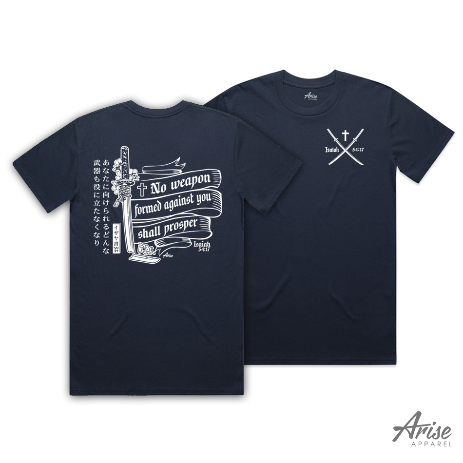A special drop of my original artwork design taking the scripture and combining it with a Japanese theme look. I always liked Asian art related to ninjas, samurai, or katana. To combine Japanese scripture with a Christianity design is so cool! Only made possible to realize this scripture to heart: "No weapon formed against you shall prosper." - Isaiah 54:17Β